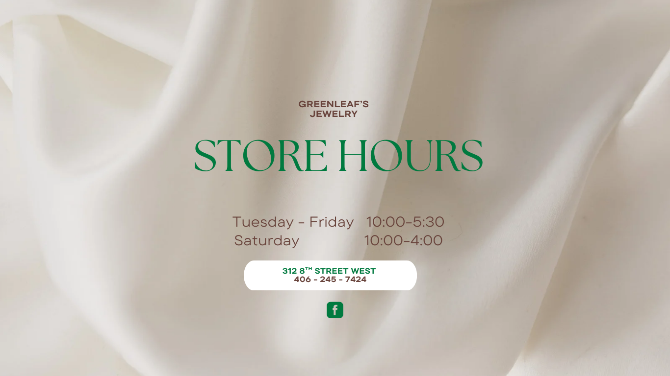 Greenleaf’s is a locally owned and operated jewelry store built on integrity and trust. As a family business serving the Billings community and surrounding area since 1932, we are committed to quality and unsurpassed customer service. Located on 8th Street West and Howard, we offer easy parking and minimal walking for our customers.